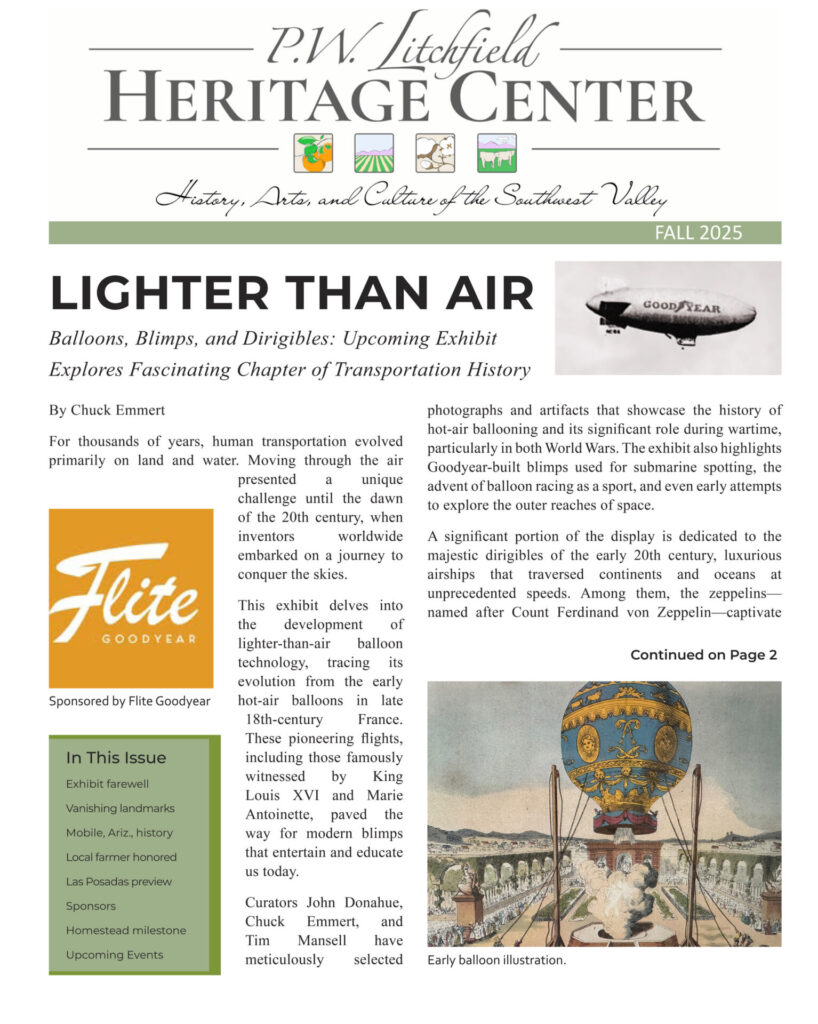 The P.W. Litchfield Heritage Center publishes two newsletters per year. Each 8 to 12 page newsletter is filled with information and photographs that provided information about the newest exhibit, programs, updates and local history.